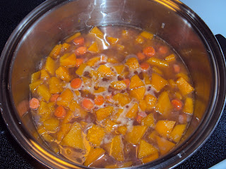 Chop up the squash, carrots and onion and bring it to a boil. Simmer for 20-30 minutes...